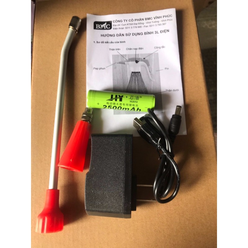 * Bình xịt điện 3 lít chính hãng BMC là sản phẩm sạc pin Lithium có thể phun xịt được 30 bình 3 lít sau mỗi lần sạc đầy.* Bình xịt 3 lít rất tiện dụng cho phun xịt thuốc diệt côn trùng, tưới hoa cây cảnh và khử trùng, khử khuẩn khu vực nhỏ.