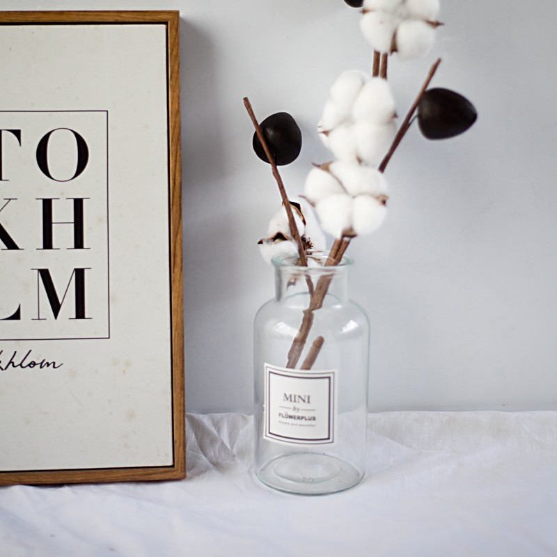 Bình bông cắm hoa thủy tinh phong cách Scandinavian trang trí hoa khô cao 16cm