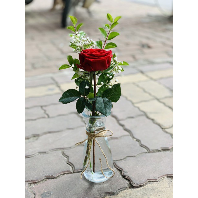 Bình bông thủy tinh kích thước 18cm rộng 6cmThích hợp làm vật trang trí cắm bông, cắm hoa