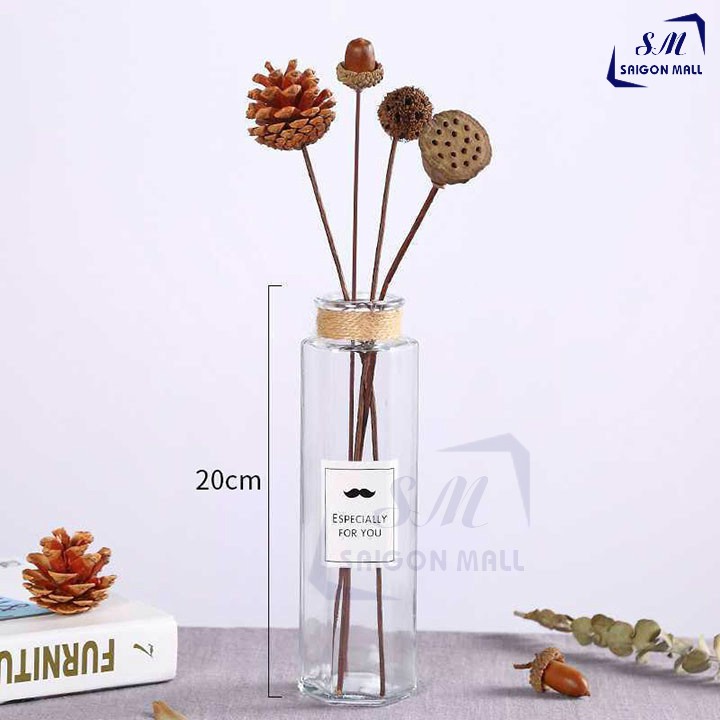 Sản phẩm chỉ gồm bình hoa thủy tinh,không bao gồm hoa và phụ kiện dây quấn.kích thước: