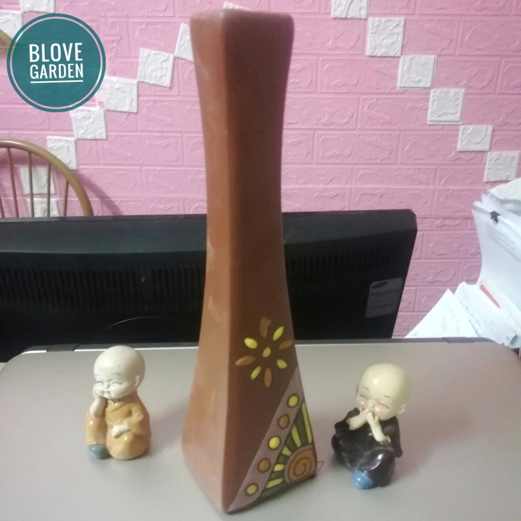 + Lọ hoa được hình thành từ đất sét hoặc đất cao lanh nung ở nhiệt độ khoảng 800 độ C tạo nên sản phẩm gốm Bát Tràng có lớp da gốm mộc màu nâu đỏ rất đặc trưng với bề mặt lì và nhẵn. Nổi bật trên thân lọ là họa tiết thổ cẩm được người nghệ nhân tô vẽ bằng nhiều màu sắc rất sinh động, mang lại sự độc đáo với ý nghĩa về vẻ đẹp dân tộc, về nét đẹp truyền thống.
