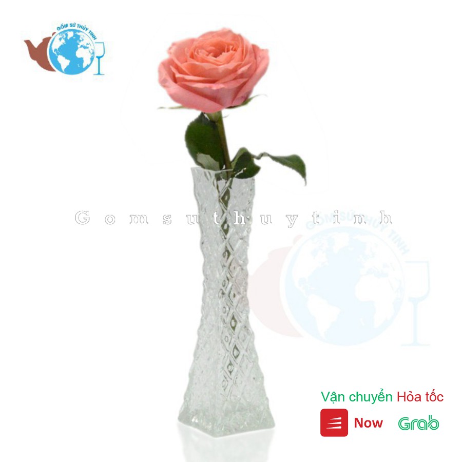 Bình bông lọ hoa thủy tinh 1 cành thanh xuân tháp vuông TXTV