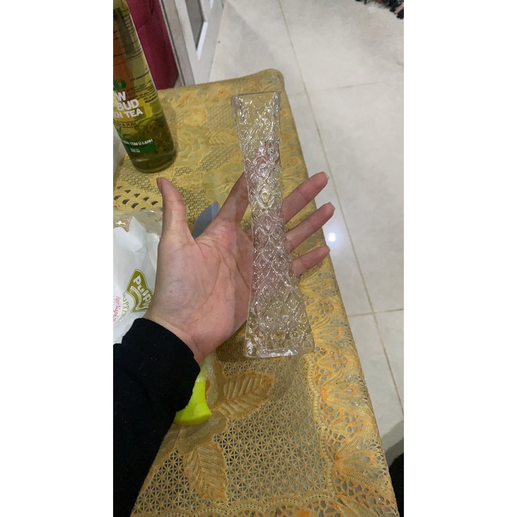 BÌNH BÔNG LỌ HOA THỦY TINH 1 CÀNH THANH XUÂN THÁP VUÔNG TXTVChiều cao 18cm đường kính miệng 3.7cm đường kính đáy 5cm