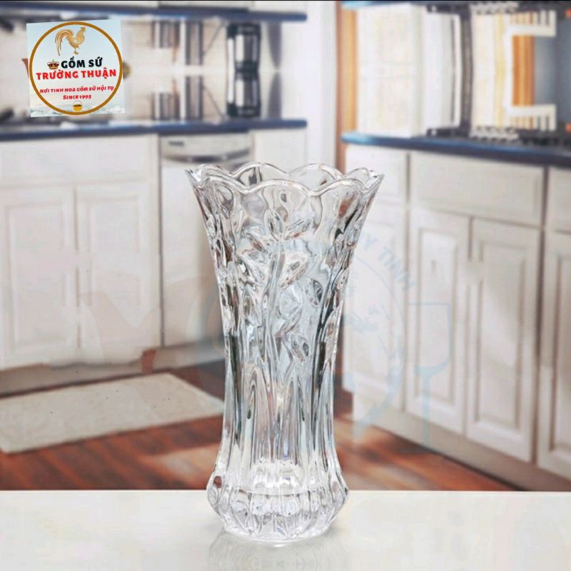 Giới thiệu Bình bông lọ hoa thủy tinh cao 20CM TRẮNG TRONG họa tiết ngẫu nhiên