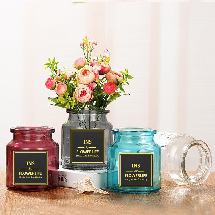Bình Bông Lọ Hoa Thủy Tinh dáng thấp tem đen 10x11.5cm BB24