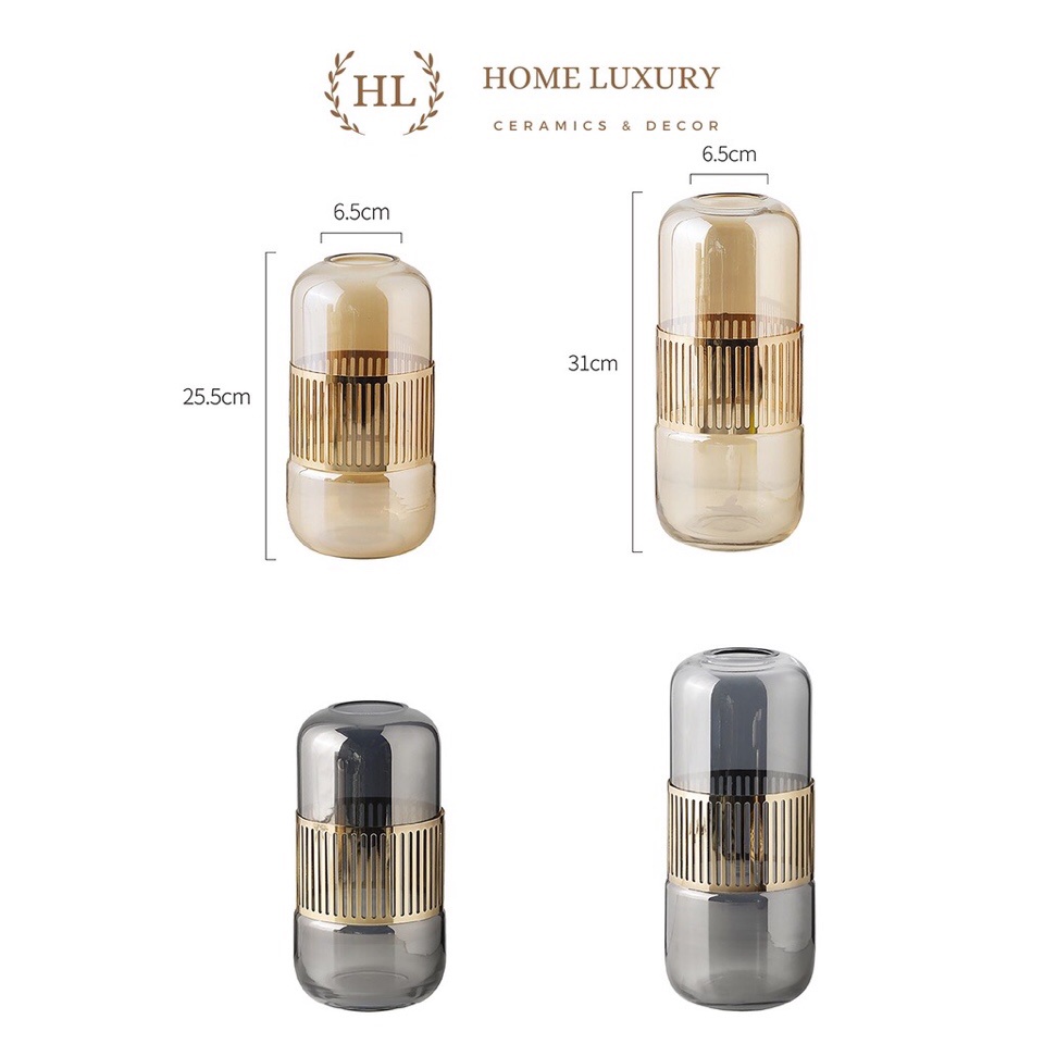 Bình bông lọ hoa thủy tinh vàng Decor 2022, lọ hoa thủy tinh bọc hợp kim màu vàng