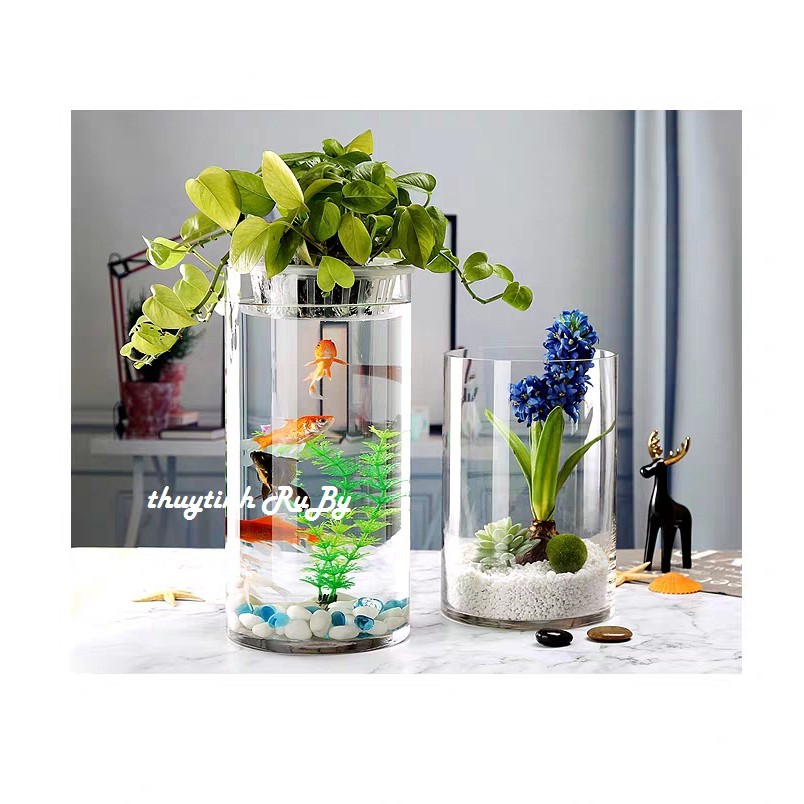 Bình bông lọ hoa thủy tinh có Đường kính 12cm, Chiều cao 20cm. Chậu cây thủy sinh, bể cá, hồ cá mini để bàn.Bình bông lọ hoa thủy tinh được sản xuất dựa trên công nghệ hiện đại với chất liệu thủy tinh cao cấp nên có độ trong suốt đẹp mắt. Bình rất dễ dàng vệ sinh, khó trầy xước và an toàn sử dụng.