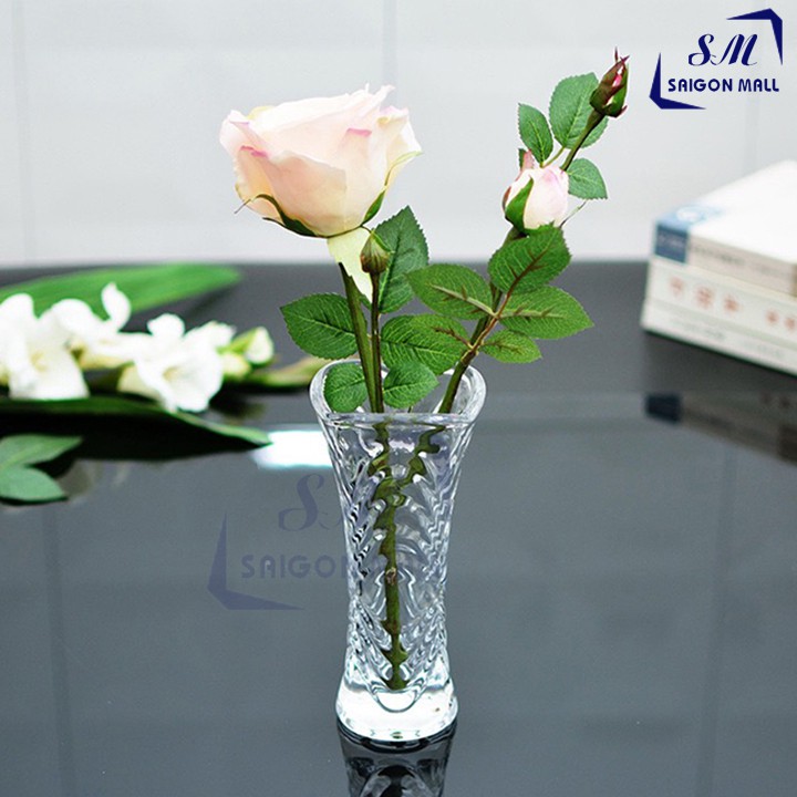 Với bình bông lọ hoa thủy tinh trong suốt, bạn có thể thỏa sức sáng tạo với nhiều phong cách cắm hoa khác nhau, rất phù hợp khi trang trí bàn làm việc hoặc bàn ăn.