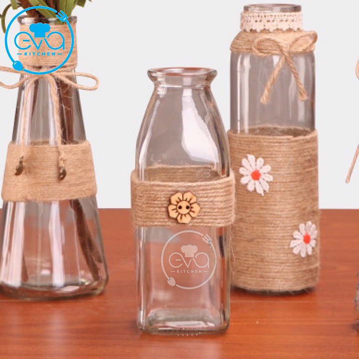 Bình Bông Lọ Hoa Thủy Tinh Vuông Tặng Kèm Dây Bố Trang Tr