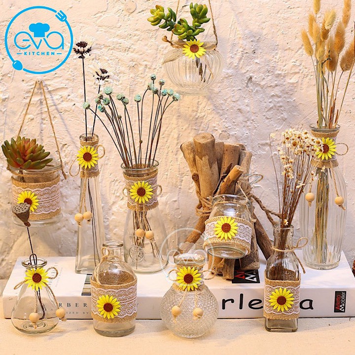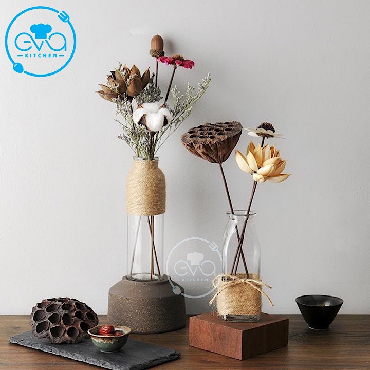 Bình Bông Lọ Hoa Thủy Tinh Tròn Tặng Kèm Dây Bố Trang Trí
