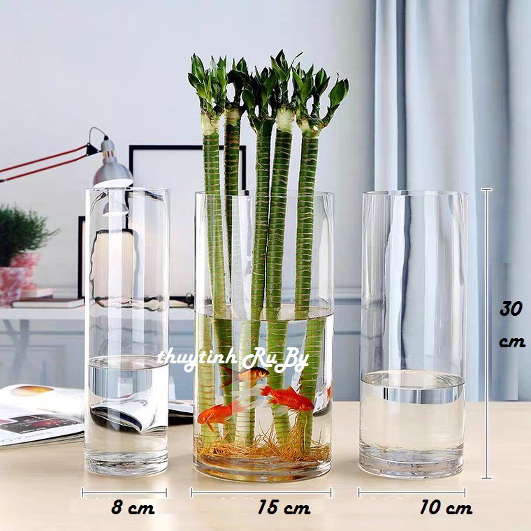Bình hoa thủy tinh hình trụ giúp bạn trang hoàng nhà cửa trở nên đẹp hơn. Kiểu dáng sang trọng mang tính thẩm mỹ cao, tạo điểm nhấn tinh tế cho phòng khách, phòng làm việc, bàn ăn… Là món quà trang trọng dành tặng người thân, bạn bè, đồng nghiệp…