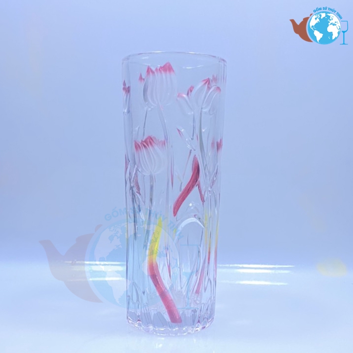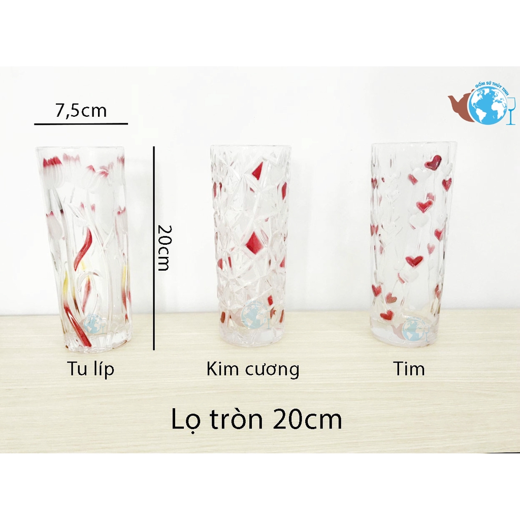 Bình bông lọ hoa trang trí hình trụ IN MÀU sang trọng chiều cao 20cm
