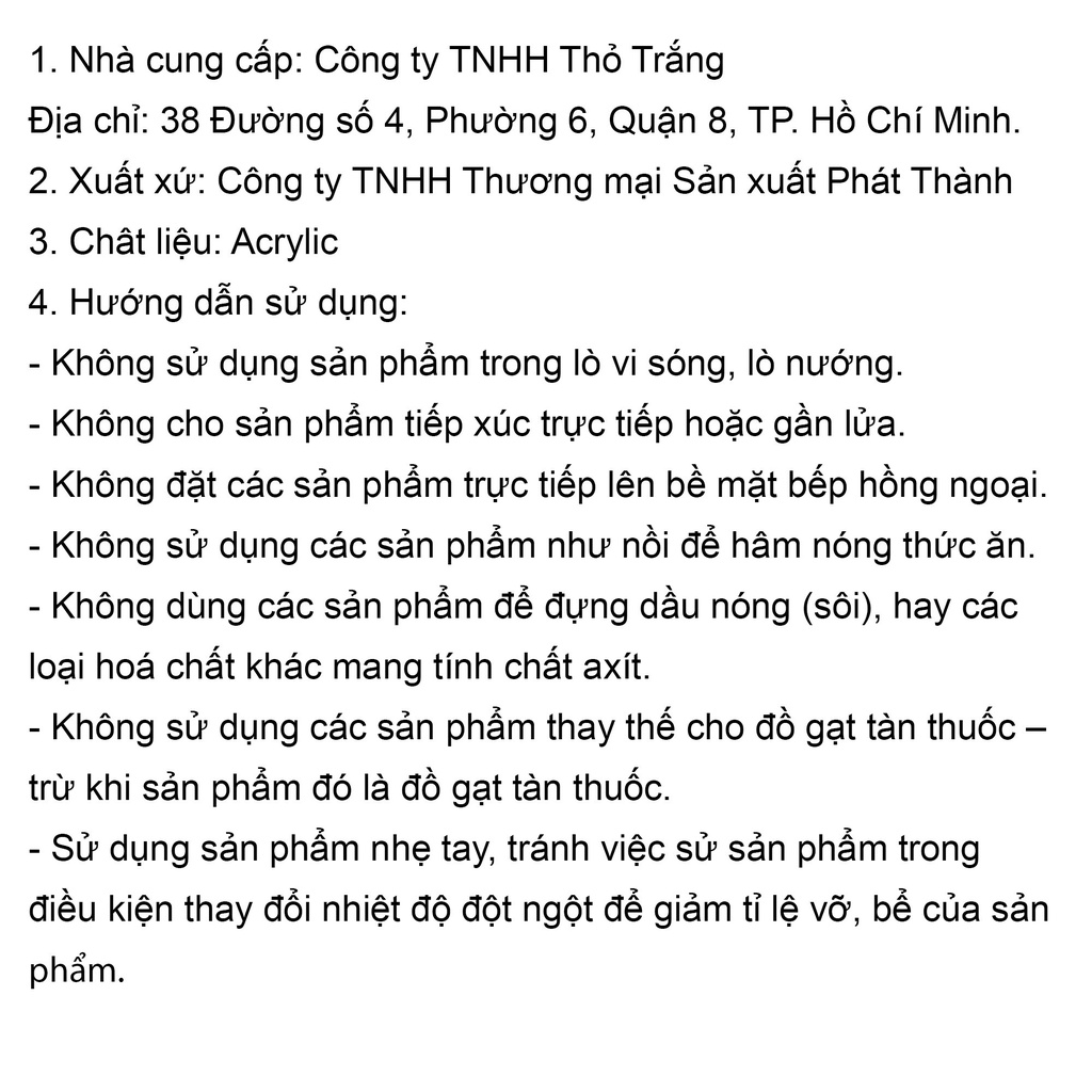 Không sử dụng sản phẩm làm từ nhựa acrylic trong máy rửa chén bát và lò vi sóng.