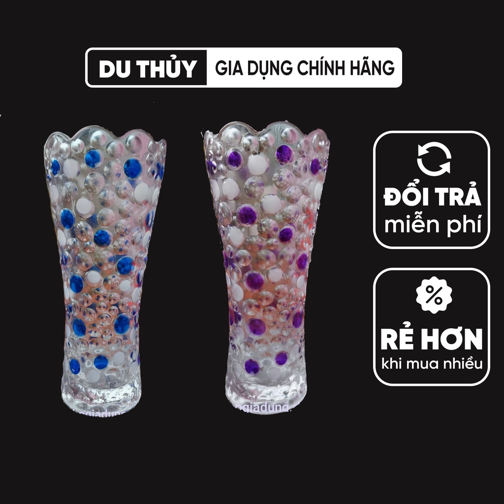 Bình bông thủy tinh 25 cm chất liệu thủy tinh cao cấp, thiết kế hoa văn đẹp mắt dùng trang trí nhà cửa sang trọng