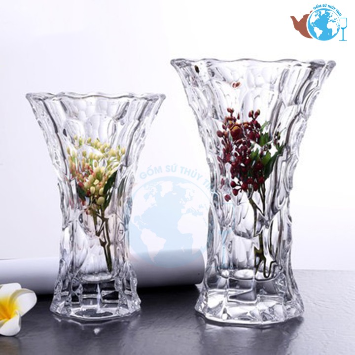 Bình bông thủy tinh kiểu EO ĐÁ cao cấp sang trọng cao 28cm Mã 8103
