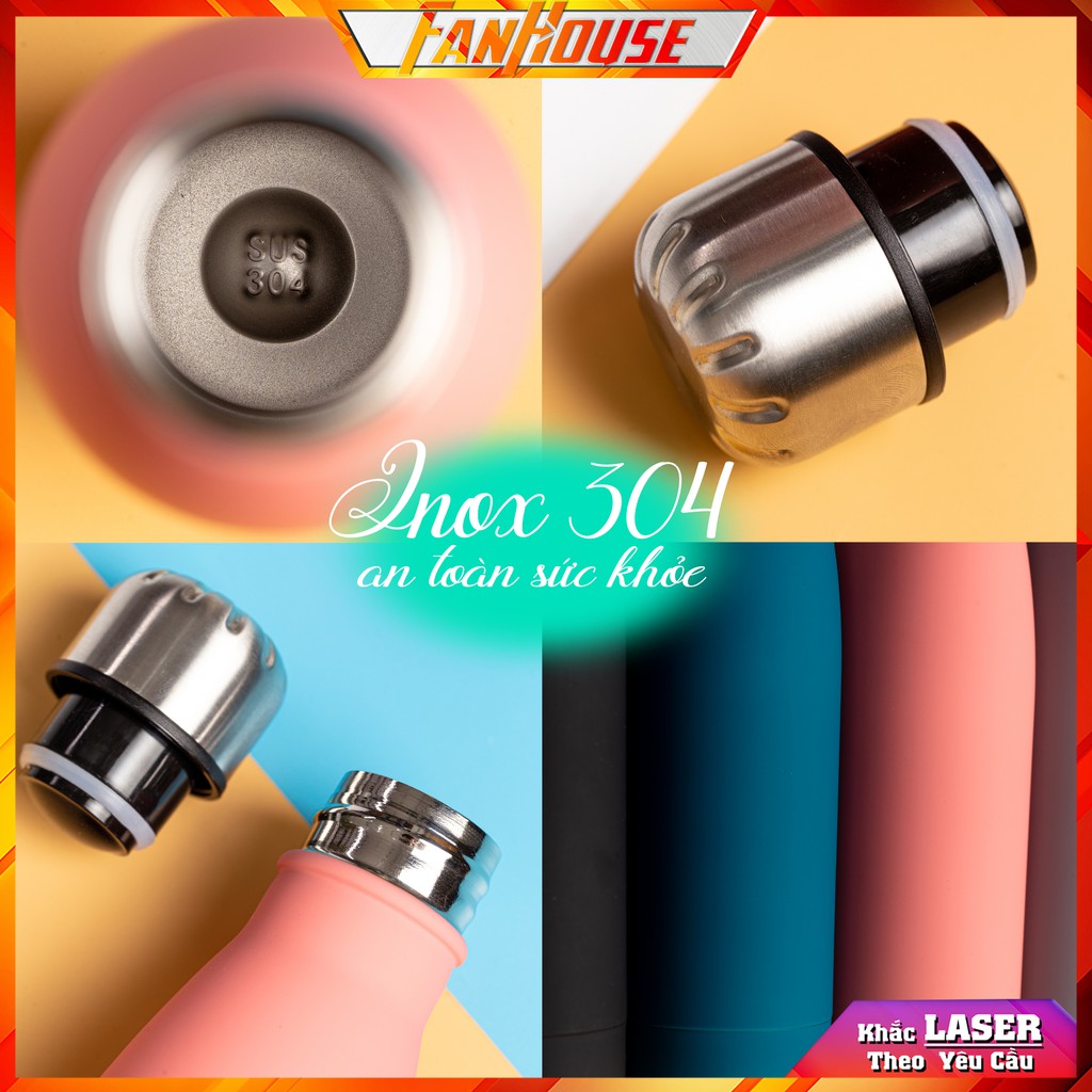 Bình bowling Fan House giữ nhiệt 12h chai đựng nước cao cấp dung tích 500ml chất liệu inox 304 vỏ chống xước