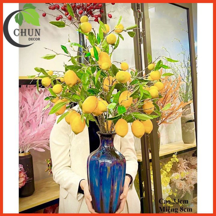 Nhà cửa & Đời sống > Trang trí nhà cửa > Bình trang trí || Bình cắm cành đào tết, bình cắm thanh mai, lựu đỏ, chanh mỹ cao 33cm, bình sứ men hỏa biến trang trí phòng kháchCòn hàng