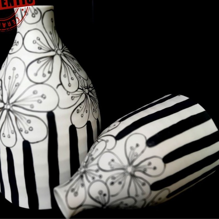 Giới thiệu Bình cắm hoa/ bình trang trí-họa tiết vẽ hoa đen trắng sản xuất tại xưởng gốm Authentic bat tràng
