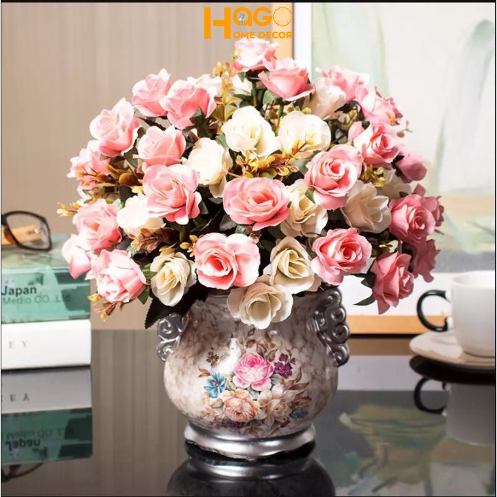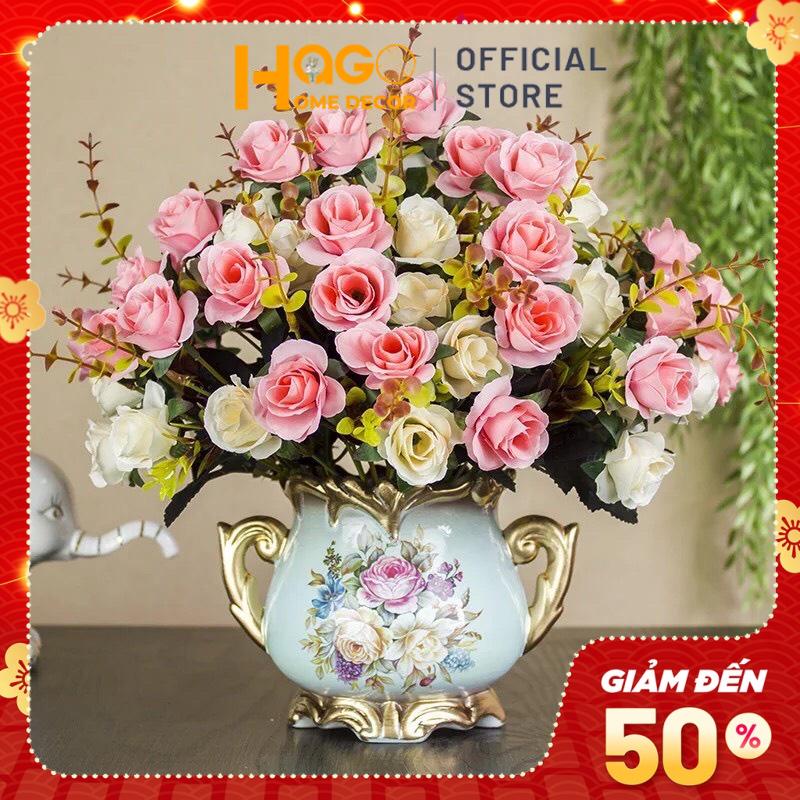 Lọ hoa decor, bình cắm hoa có tay cầm cắm sẵn nhiều mẫu hoa cao cấp sang trọng phong cách quý tộctrang trí phòng khách,kệ tủ, decor nhà.