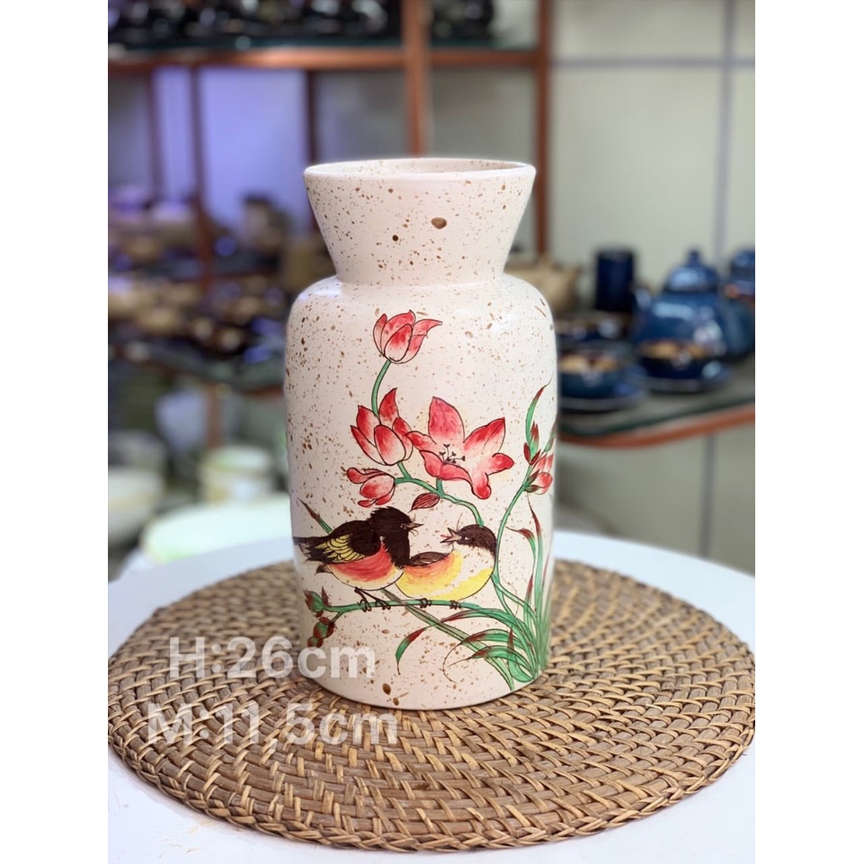 Bình cắm hoa decor siêu đẹp, vò cắm hoa gốm vuốt tay, vẽ tay Bát Tràng dáng lá trụ - Gốm Nghệ Nhân
