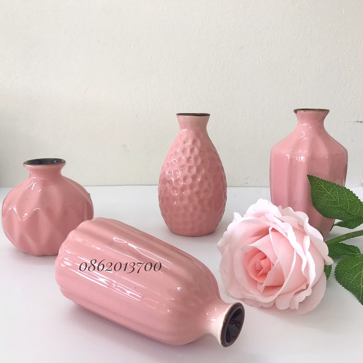 Bình cắm hoa Gốm sứ Bát Tràng mini tráng men màu hồng nhỏ gọn, decor xinh xắn