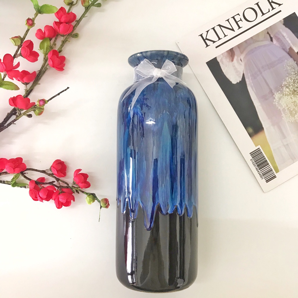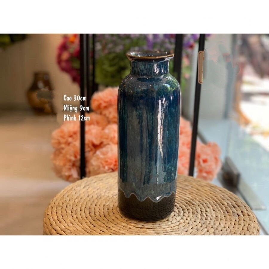 9MÔ TẢ SẢN PHẨM:Bình cắm hoa Gốm sứ Bát Tràng là bình cao cấp, vô cùng sang trọng, phù hợp với cả các loại hoa giả và hoa tươi. Sứ Bát Tràng, men hỏa biến, tráng men trong ngoài. Dòng men hỏa biến sẽ có sự thay đổi về sắc độ theo nhiệt độ đun nên mỗi sản phẩm làm ra sẽ có sự chênh lệch về độ sáng/tối và đường vân trên lọ. Do đó mỗi sản phẩm làm ra sẽ là độc nhất vô nhị. Đồng thời dưới ánh sáng khác nhau sản phẩm cũng sẽ có sự khác biệt về màu sắc ạ. Quý khách vui lòng chú ý giúp shop ạ.