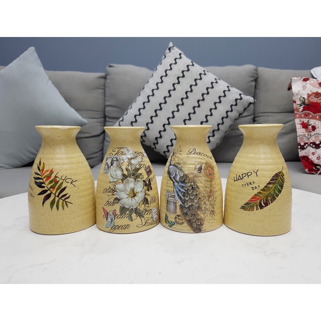 Bình cắm hoa gốm sứ thân bầu họa tiết size trung