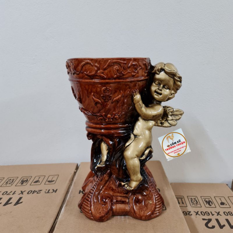 Nhà cửa & Đời sống > Trang trí nhà cửa > Bình trang trí || Bình cắm Hoa Lụa, Lông Công Composite Thiên thần đứng H31cmCòn hàng