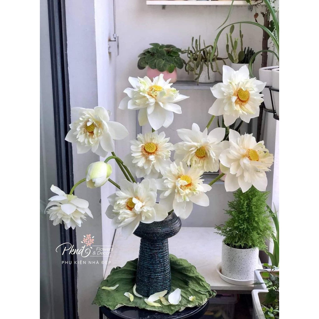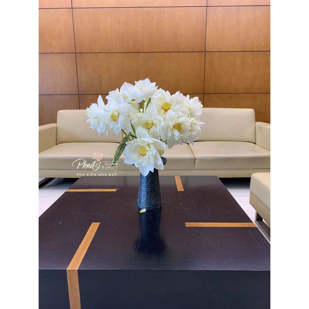 — Chất liệu hoa lụa cùng bình gốm sứ trắng men khử cao cấp trẻ trung !
