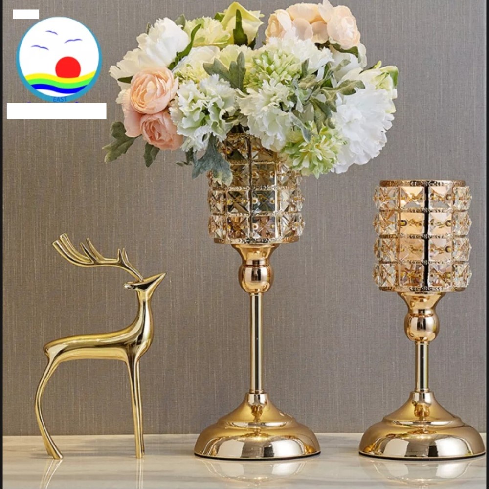 Bình cắm hoa pha lê thiết kế mạ vàng sang trọng dùng cắm hoa lụa cao cấp trang trí phòng khách, tiệc cưới đẹp