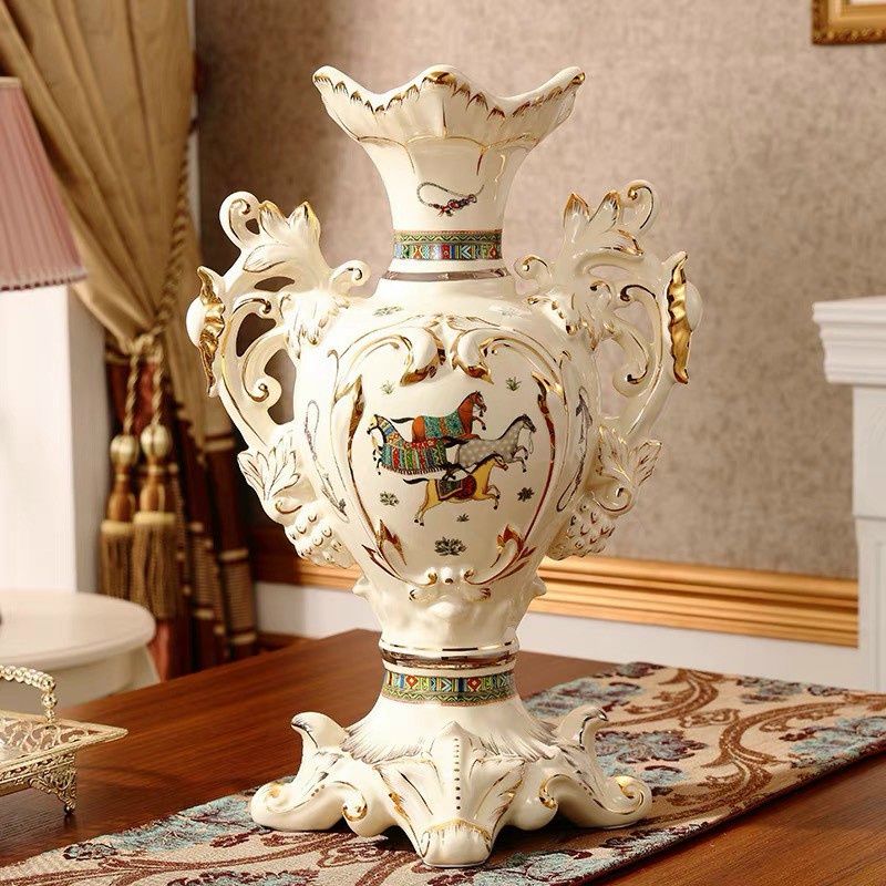 Nhà cửa & Đời sống > Trang trí nhà cửa > Bình trang trí || Bình Cắm Hoa Phong Cách Hoàng Gia -Bình Cắm Bông Gốm Sứ Vẽ Vàng Nhập Khẩu Cao Cấp - Kt 35*53cmCòn hàng
