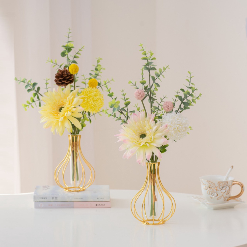 Nhà cửa & Đời sống > Trang trí nhà cửa > Bình trang trí || Bình cắm hoa thủy sinh/hoa khô khung sắt màu vàng đồng trang trí bàn phòng kháchCòn hàng
