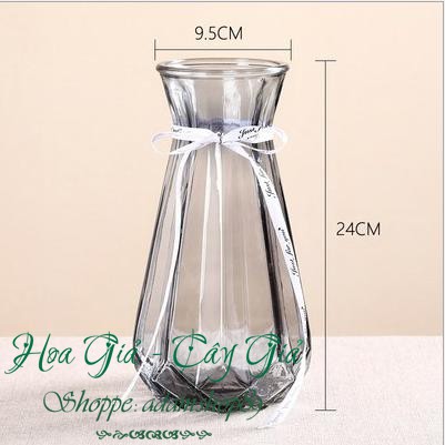 Bình cắm hoa thủy tinh thắt nơ phong cách châu Âu dùng cắm hoa tươi, hoa giả trang trí phòng...Chất thủy tinh mịn với màu sắc trang nhã dễ cắm nhiều loại hoa.