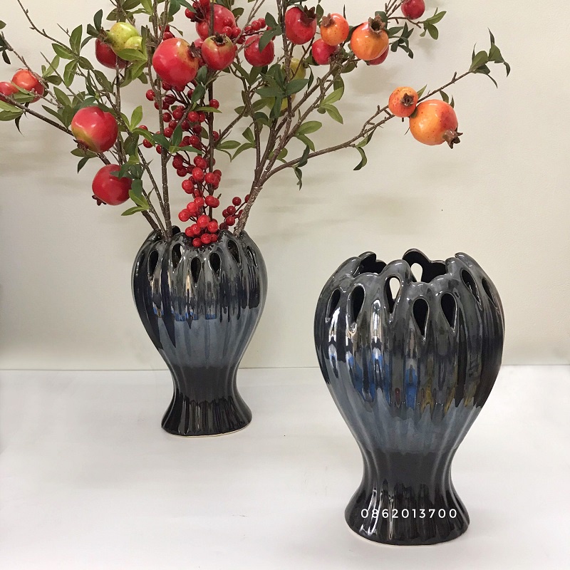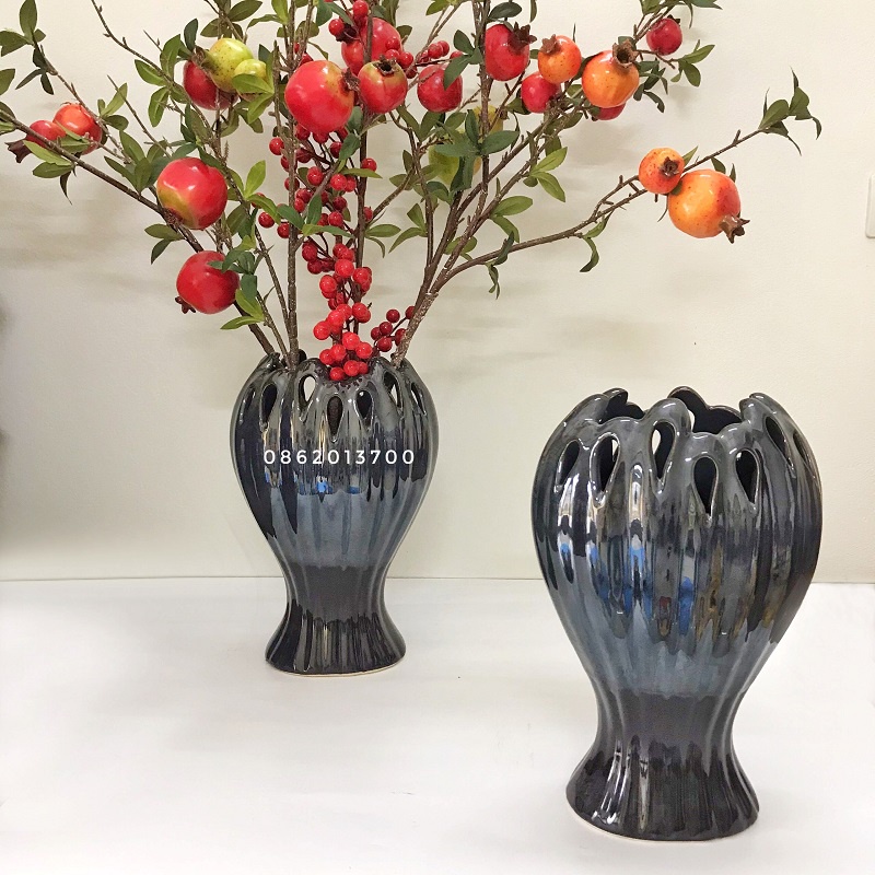 MÔ TẢ SẢN PHẨM:Bình cắm hoa Gốm sứ Bát Tràng là bình cao cấp, vô cùng sang trọng, decor phù hợp với cả các loại hoa giả và hoa tươi có thể làm bình cắm hoa decor Tết. Bình cắm hoa gốm sứ Bát Tràng, men hỏa biến, tráng men trong ngoài. Dòng men hỏa biến sẽ có sự thay đổi về sắc độ theo nhiệt độ đun nên mỗi sản phẩm làm ra sẽ có sự chênh lệch về độ sáng/tối và đường vân trên lọ. Do đó mỗi sản phẩm làm ra sẽ là độc nhất vô nhị. Đồng thời dưới ánh sáng khác nhau sản phẩm cũng sẽ có sự khác biệt về màu sắc ạ. Quý khách vui lòng chú ý giúp shop ạ. bình cắm hoa decor gốm sứ tinh tế, sang trọng, bình cắm hoa decor cổ điển phù hợp với mọi không gian.