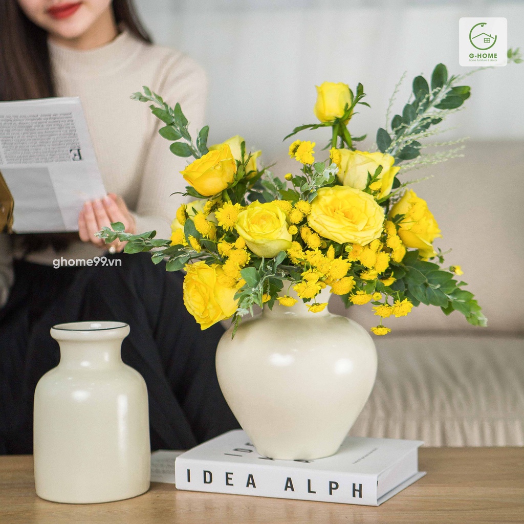 Bình cắm hoa trơn 2 màu Ghome, bình gốm sứ tráng men cao cấp cắm hoa, decor nhà cửa BH21 TRON