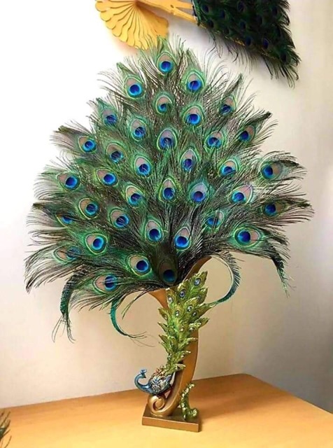 Quan niệm Phong thủy cho rằng, lông chim công có thể hút năng lượng từ trời đất, nên dùng điều hòa âm dương trong nhà, cơ quan, văn phòng, cửa hàng kinh doanh rất tốt. Có thể lấy lại hòa khí, làm cho công việc trong nhà cũng như cơ quan bạn tốt hơn.Kích thước : cao 39cm /rộng 18cm