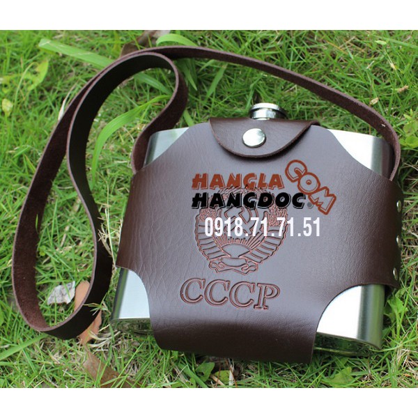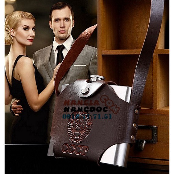 Bình CCCP đựng rượu 1 lít (32oz), hàng loại 1, có túi da đeo vai, tặng phễu inox