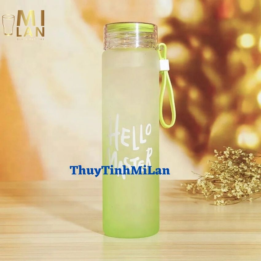 🍒 🍅 Bình chai đựng nước thủy tinh Hello Master 450ml nhiều màu sắc làm quà tặng dễ thương 🍅 🍒 ML-A001Thuỷ Tinh MiLan - Sản Xuất thuỷ tinh giá xưởng tại HCM