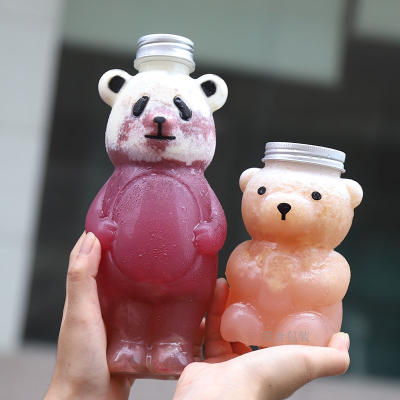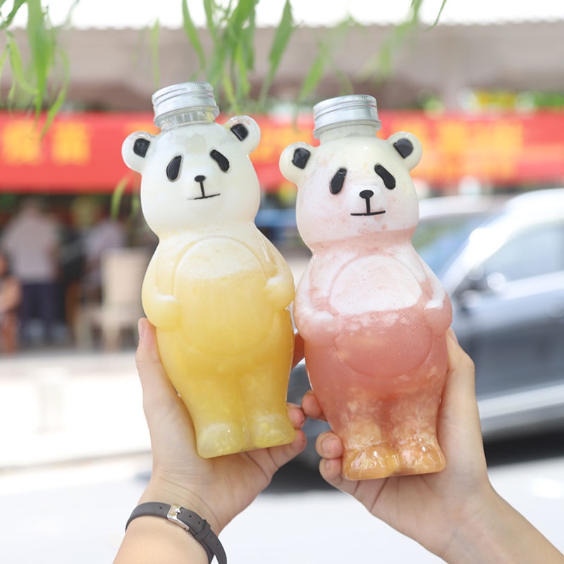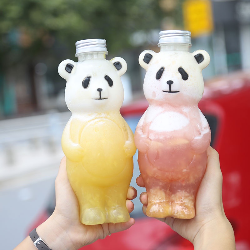 Giới thiệu Bình chai nhựa PET hình gấu Pooh bụng bự đựng trà sữa, nước ép hoa quả 800ml có nắp đậy bằng nhôm - Đồ gia dụng nhà bếp