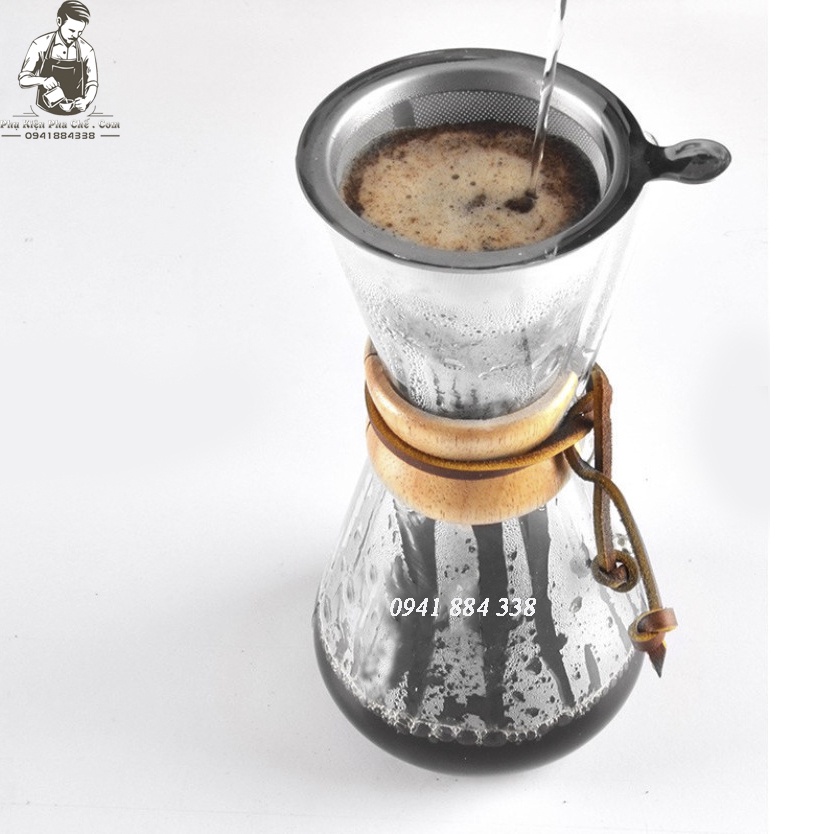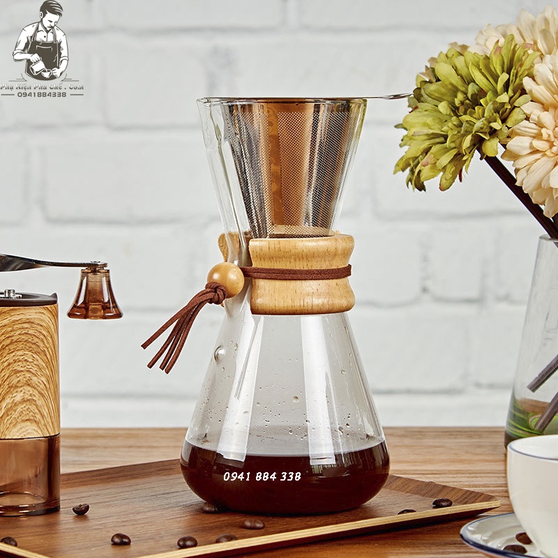 Bình Chemex Pha Cà Phê Pour Over Drip Brew V60 Thủy TinhBộ sản phẩm gồm bình và phễu lọc inox