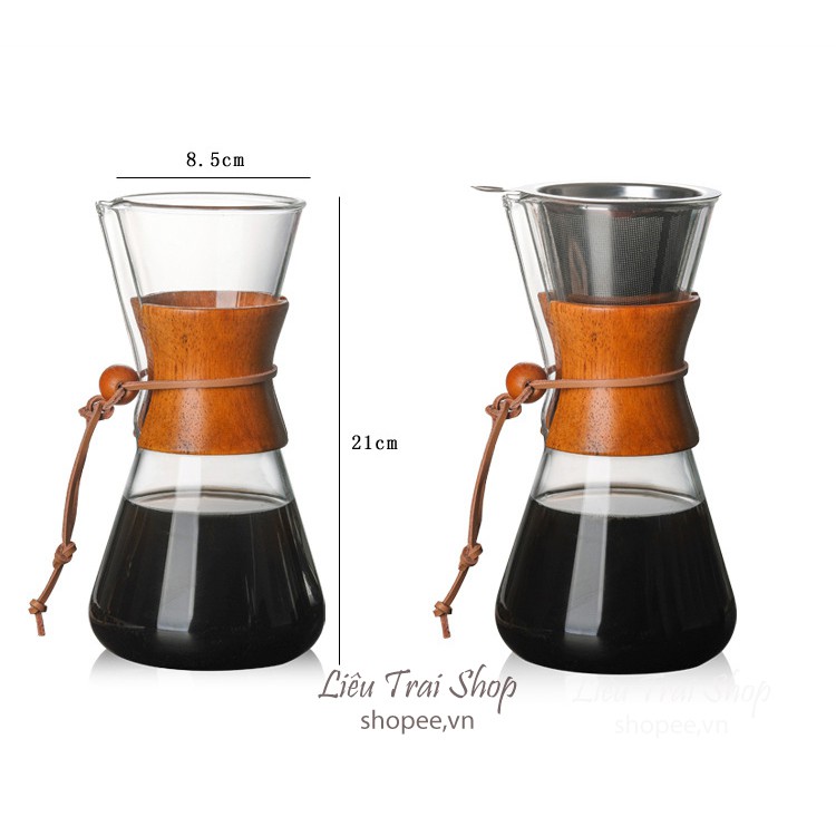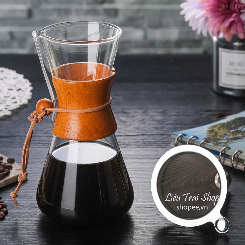 Bình chemex pha cà phê pour over drip brew v60 thủy tinhBộ sản phẩm gồm bình và phễu lọc inox