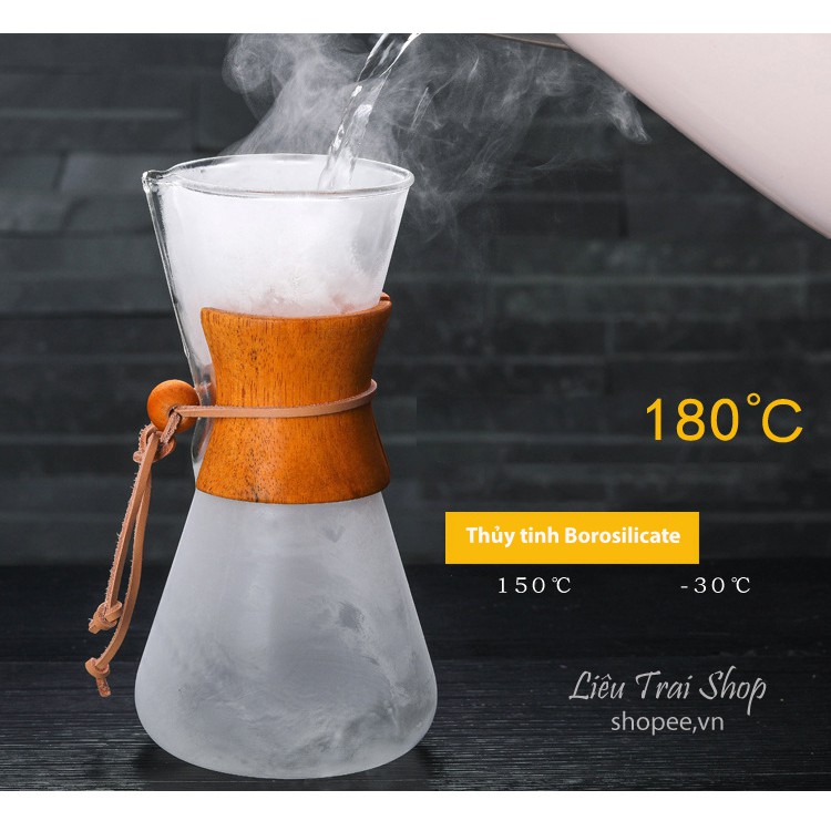 Bình chemex pha cà phê pour over drip brew v60 thủy tinh
