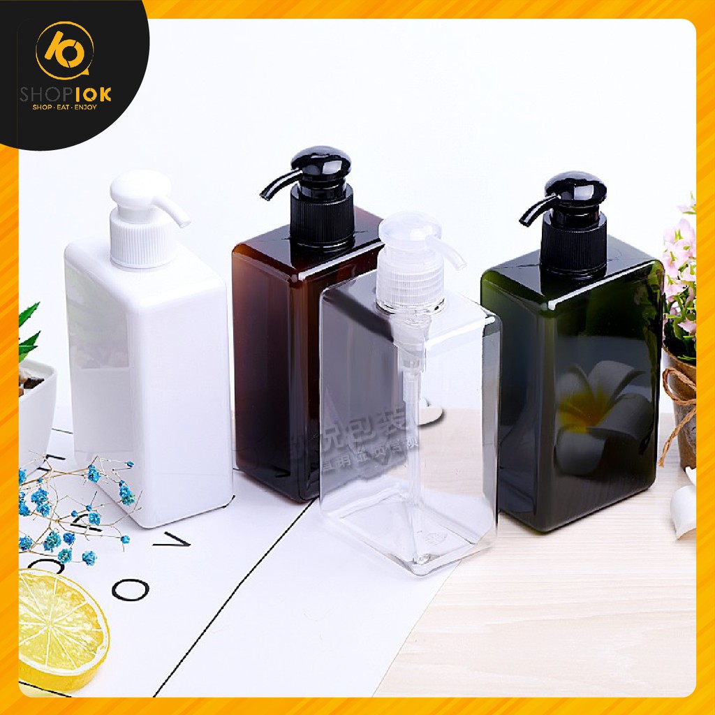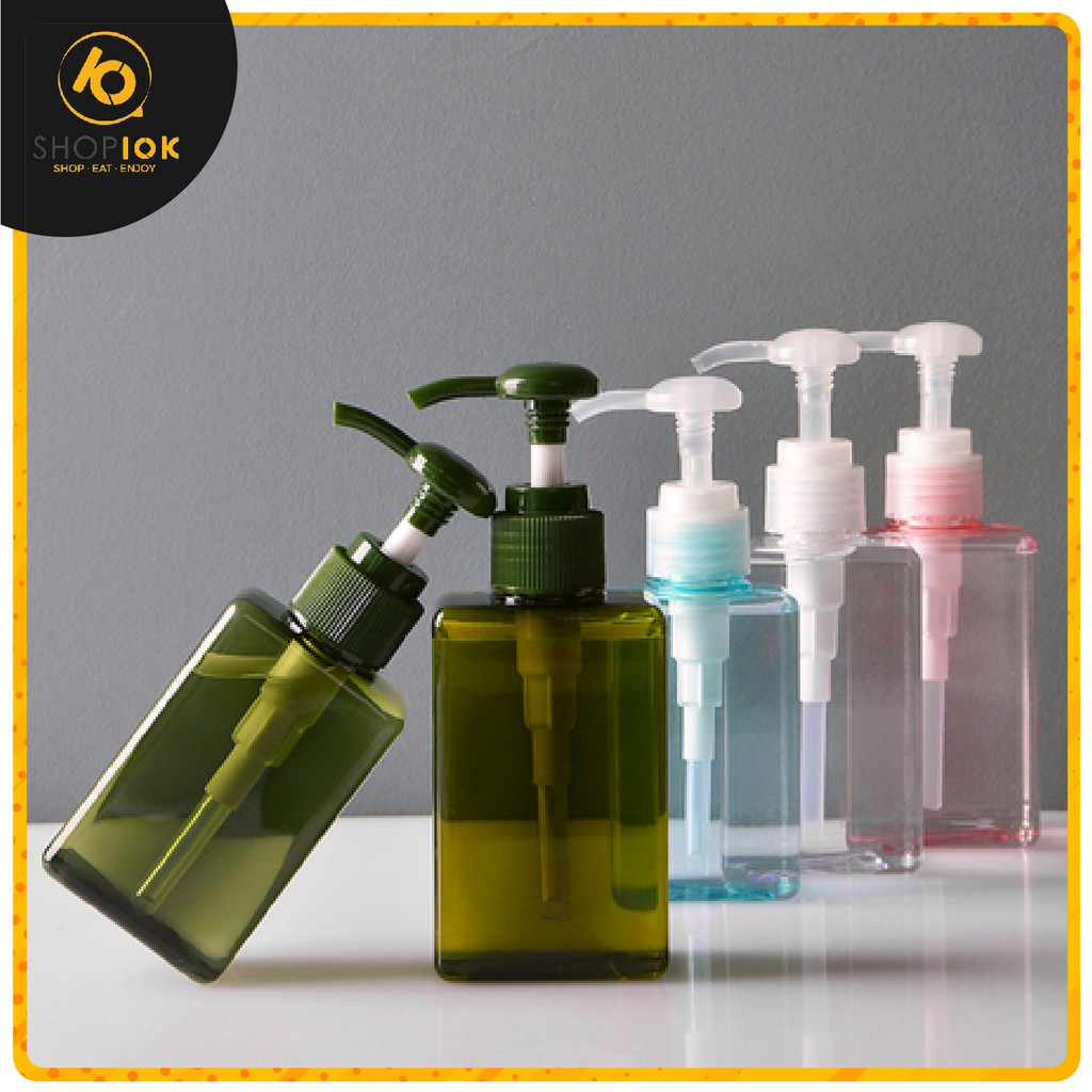 Bình chiết mỹ phẩm dạng vòi ấn dùng để chiết mỹ phẩm, dầu gội, sữa tắm (450ml,100ml) - SHOP10K- Màu sắc: Trong suốt, Trắng Đục, Xanh Rêu, Xanh Ngọc, Nâu, Hồng