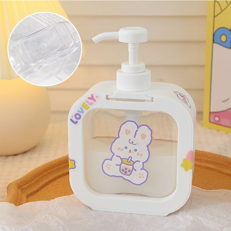 Bình chiết nước rửa tay 500ml, chai nhựa rỗng đựng nước rửa bát có vòi nhấn cute