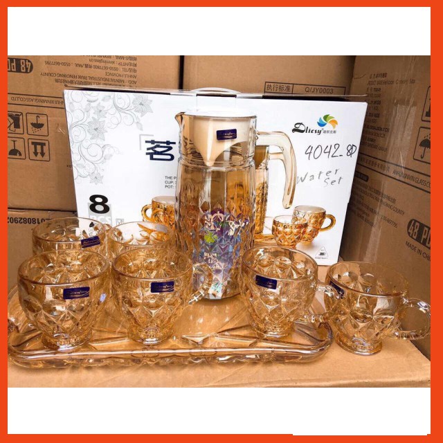 Nhà cửa & Đời sống > Bộ đồ bàn ăn > Bình nước & phụ kiện || bộ bình cốc kèm khay thủy tinh hàng đẹp có hộpCòn hàng