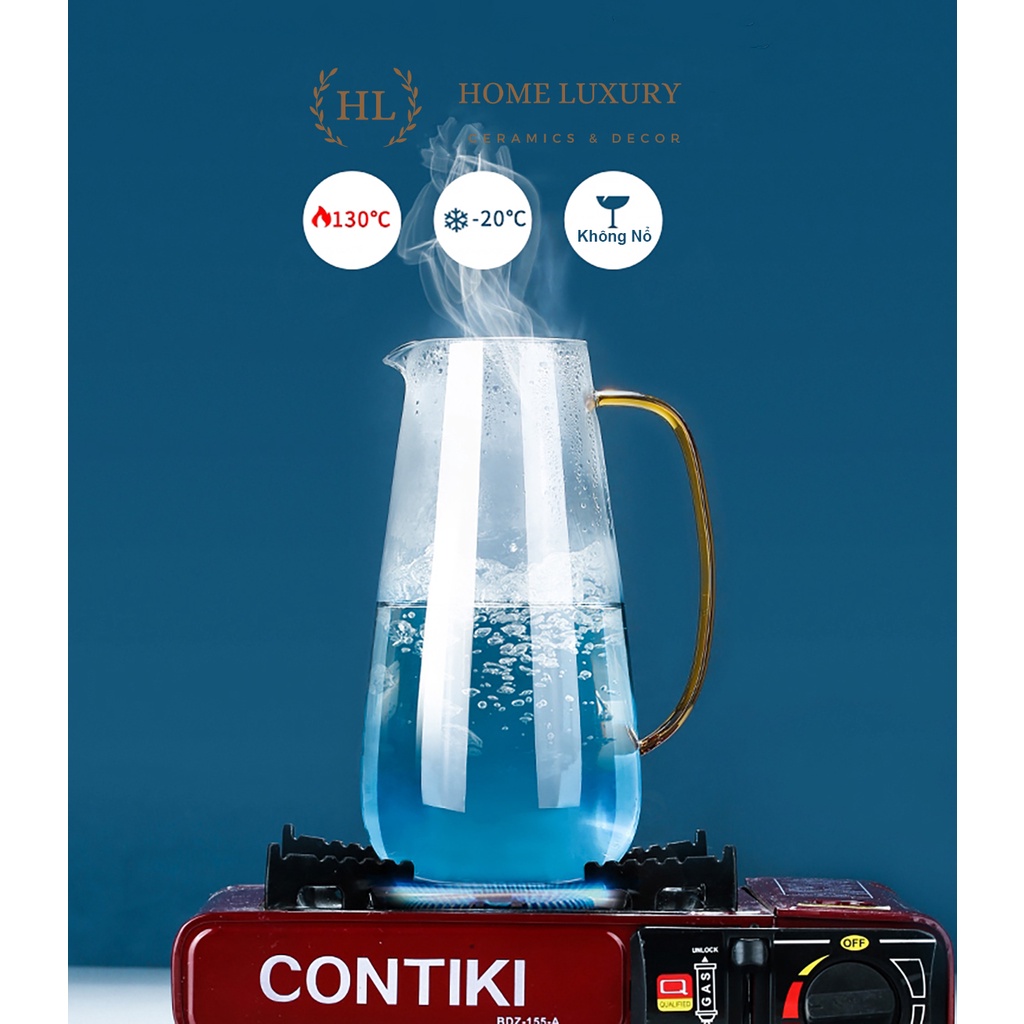 Bình và ly được thiết kế bằng chất liệu Borosilicate Cao Cấp theo phong cách Châu Âu mang lại cho người sử dụng một cách tinh tế. Với tông màu xanh Aqua tạo nên tính sang trọng ngoại hình bắt mắt. Với độ sắc xảo phun sơn xanh chiềm dần thể hiện phong cách Châu Âu.