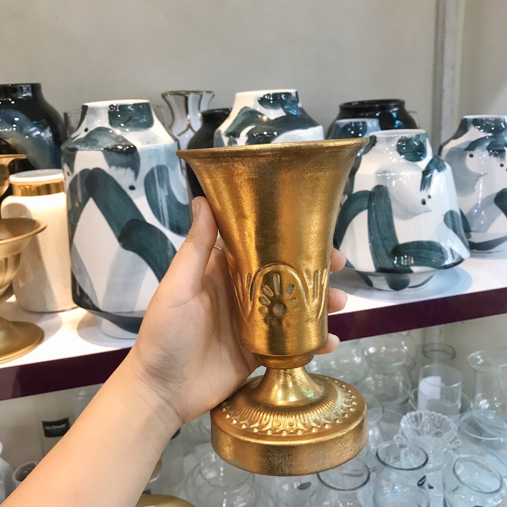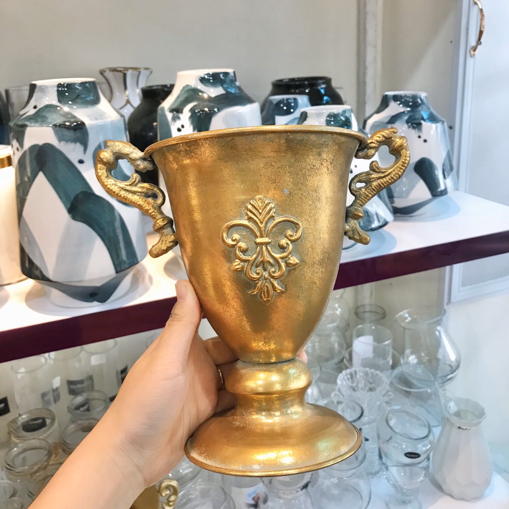 Nhà cửa & Đời sống > Trang trí nhà cửa > Bình trang trí || Bình cúp đồng chạm nổi cắm hoa - LOH0418Còn hàng