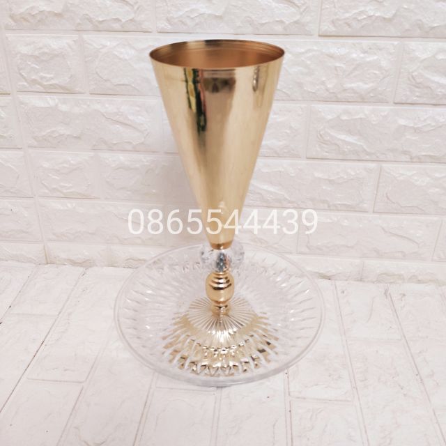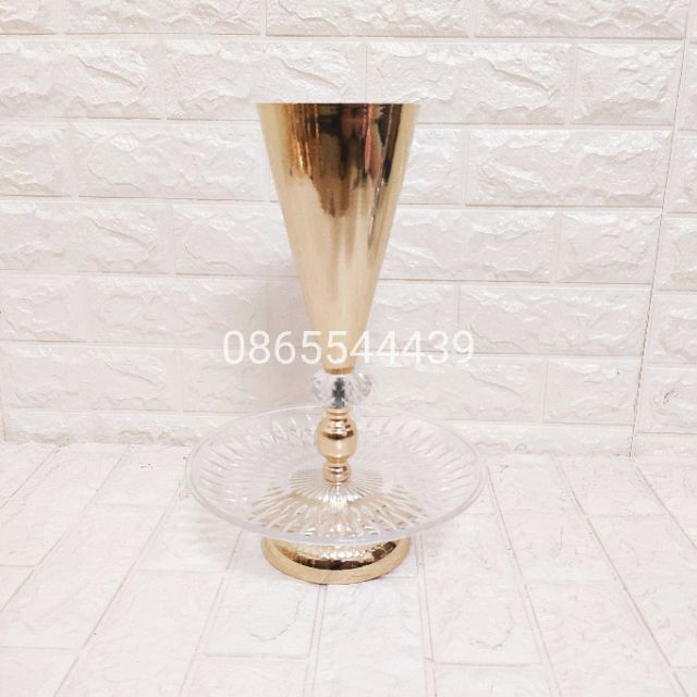 Sản phẩm 2 trong 1:Bình cúp vàng bằng sắt mạ tĩnh điện có thêm đĩa đựng bánh kẹo trong bằng nhựa Acrylic chống vỡ. Chuôi điểm pha lê sang trọng, tạo điểm nhấn khác biệt, phong khách trong không gian decor của bạn.