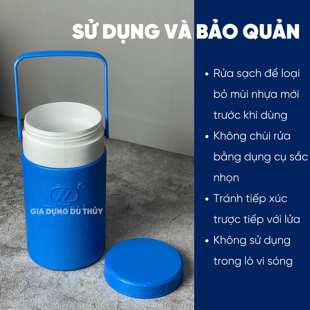 - Khả năng giữ nhiệt lên đến 12h nhờ cấu tạo 3 lớp: HD, PU, PP