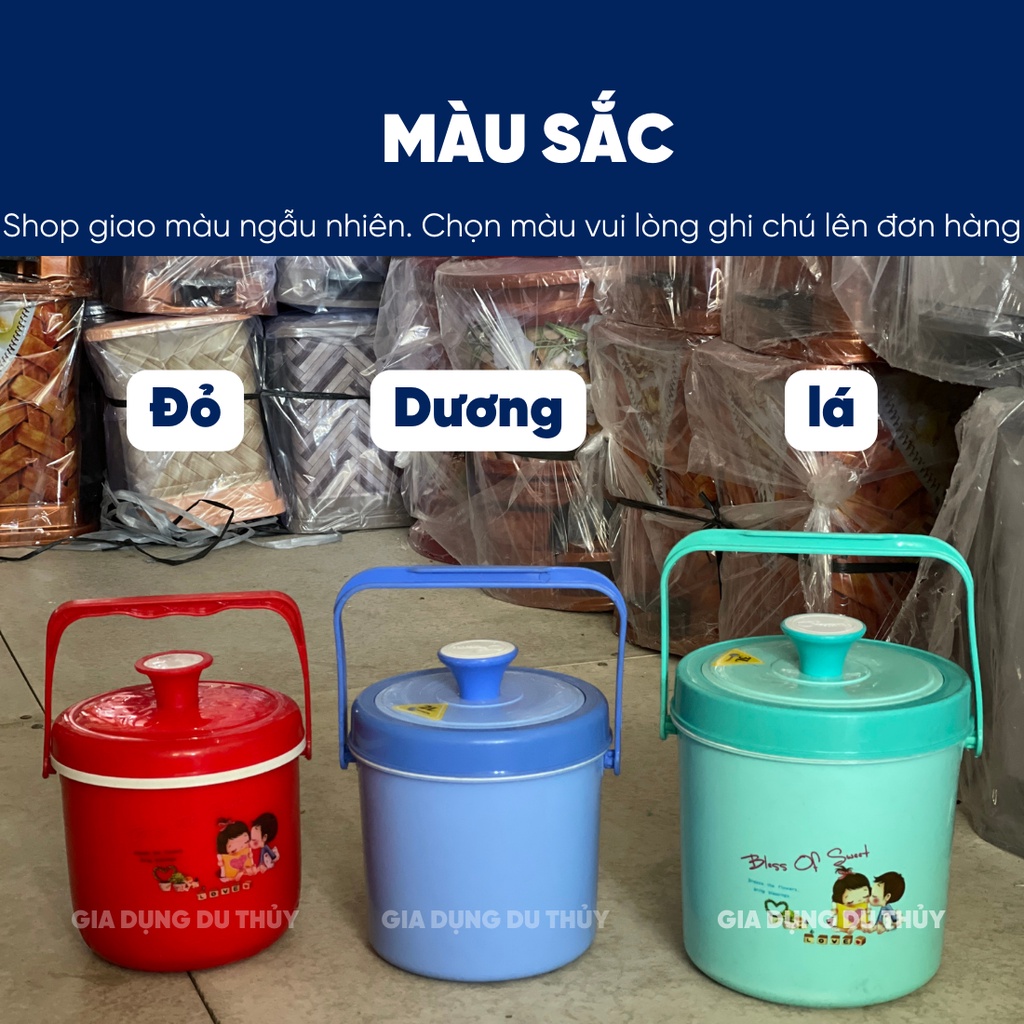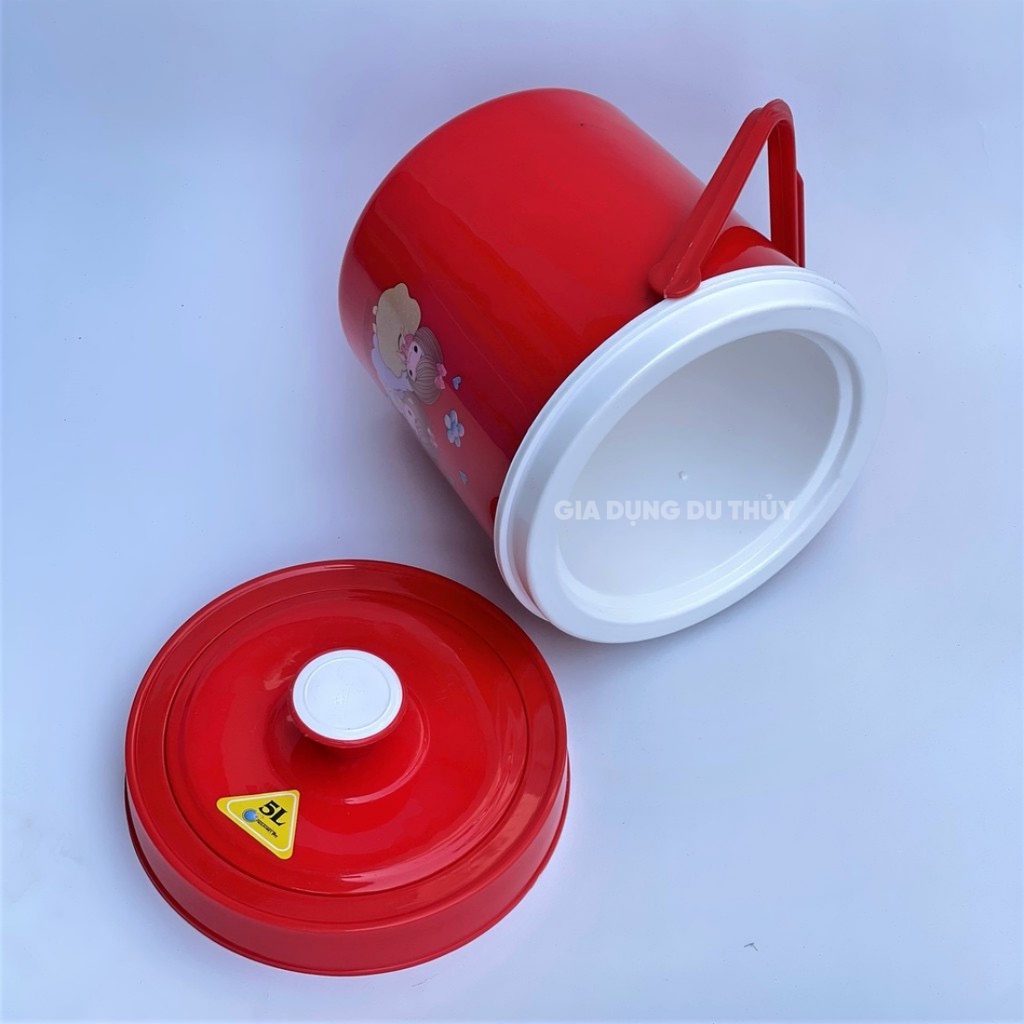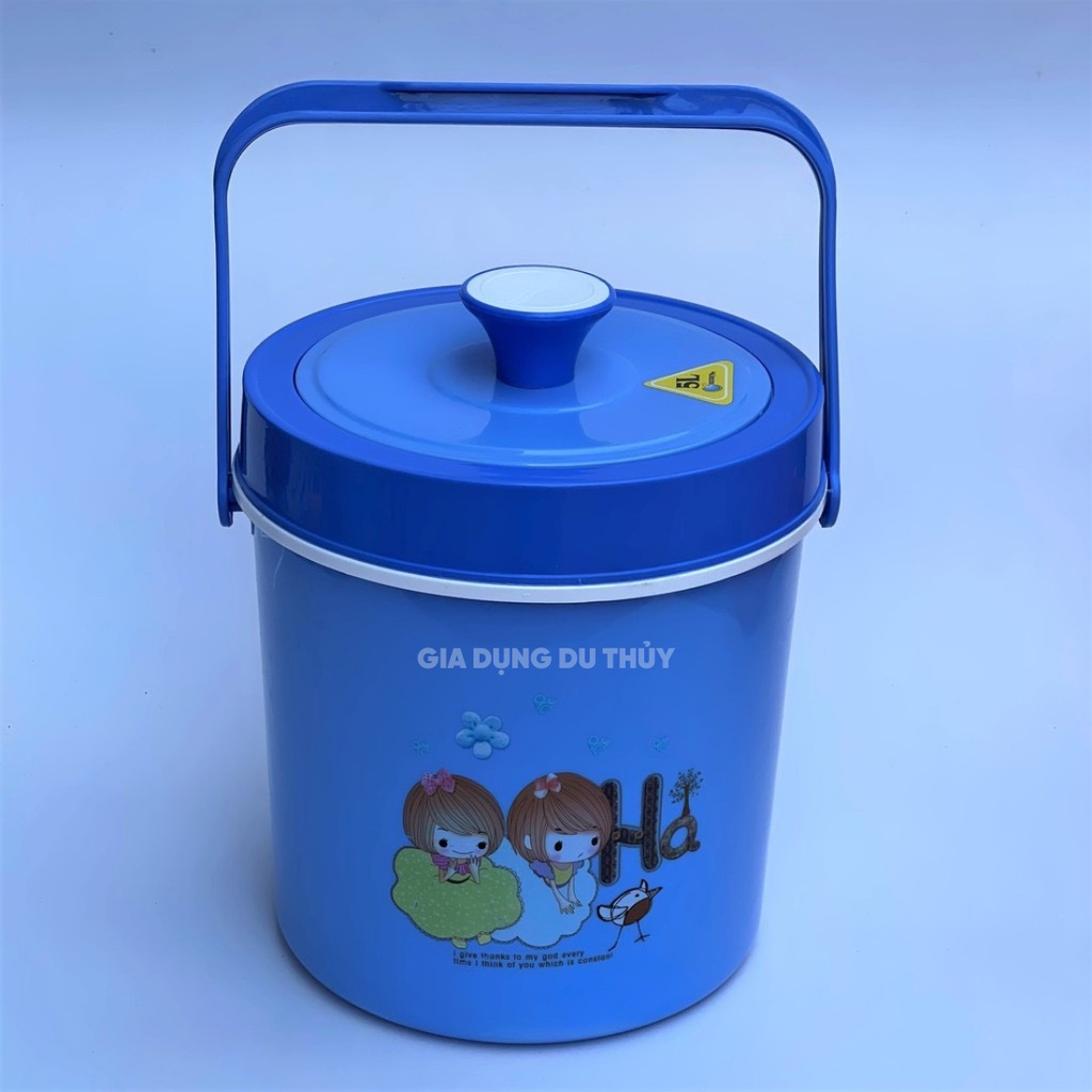 - Bình dày hai lớp nhựa, giữa là xốp cách nhiệt, nhẹ nhàng, chứa được trong bình được nhiều